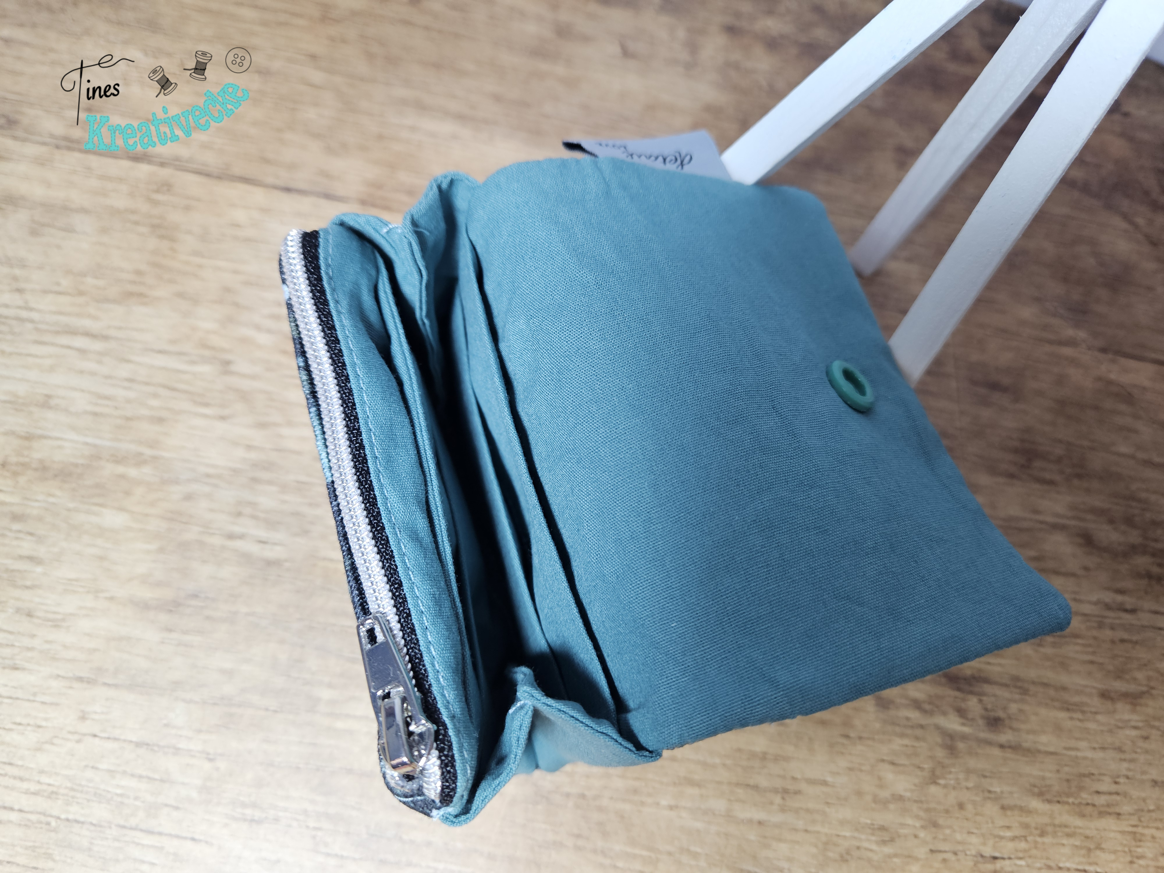 Geschlossen wird sie mittels Druckknopf. Maße ca: b: 10cm h: 8cm t: 2,5cm