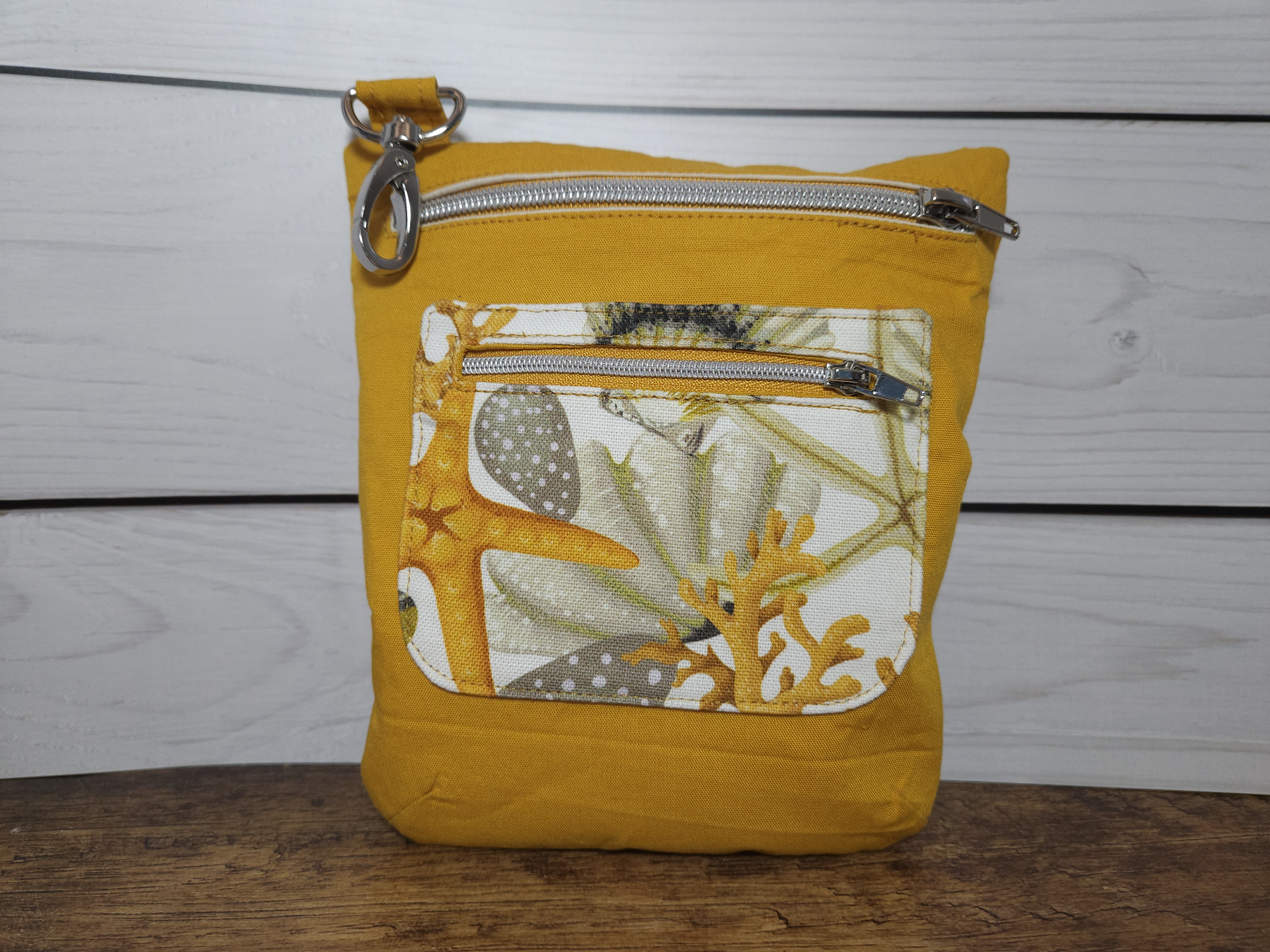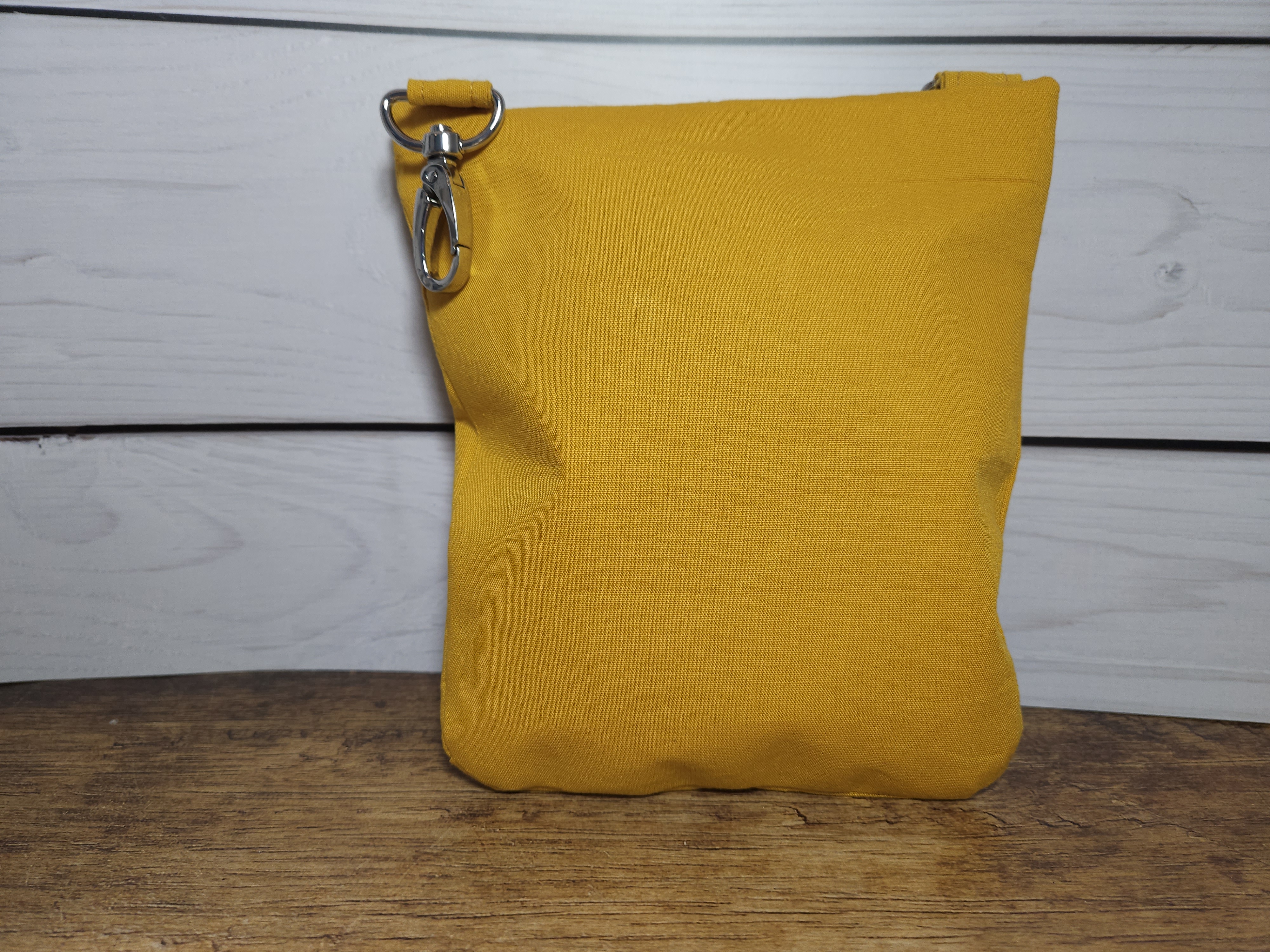 Diese kleine Tasche wird mittels Karabiner an den Gürtelschlaufen befestigt.