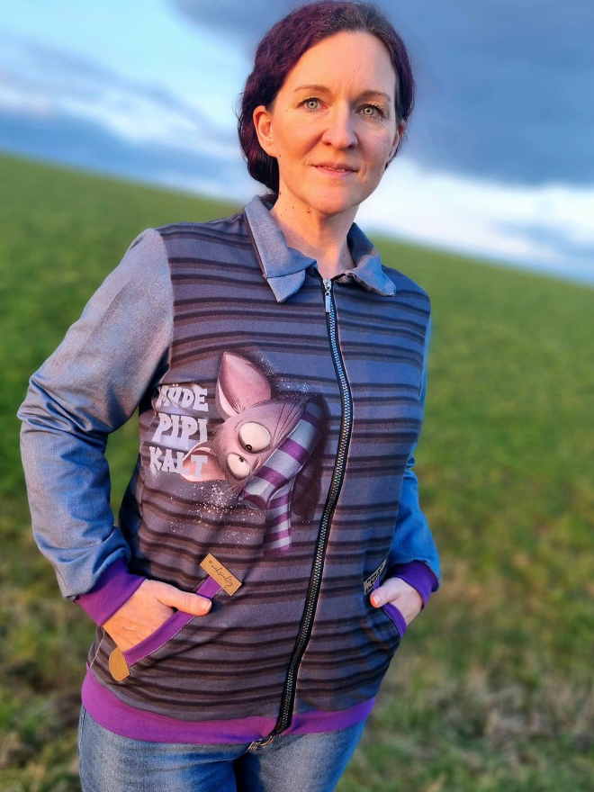 Die Jacke Max ist eine normal geschnittene Jacke. Sie kann aus Sweat, French Terry, Jersey oder Fleece genäht werden.