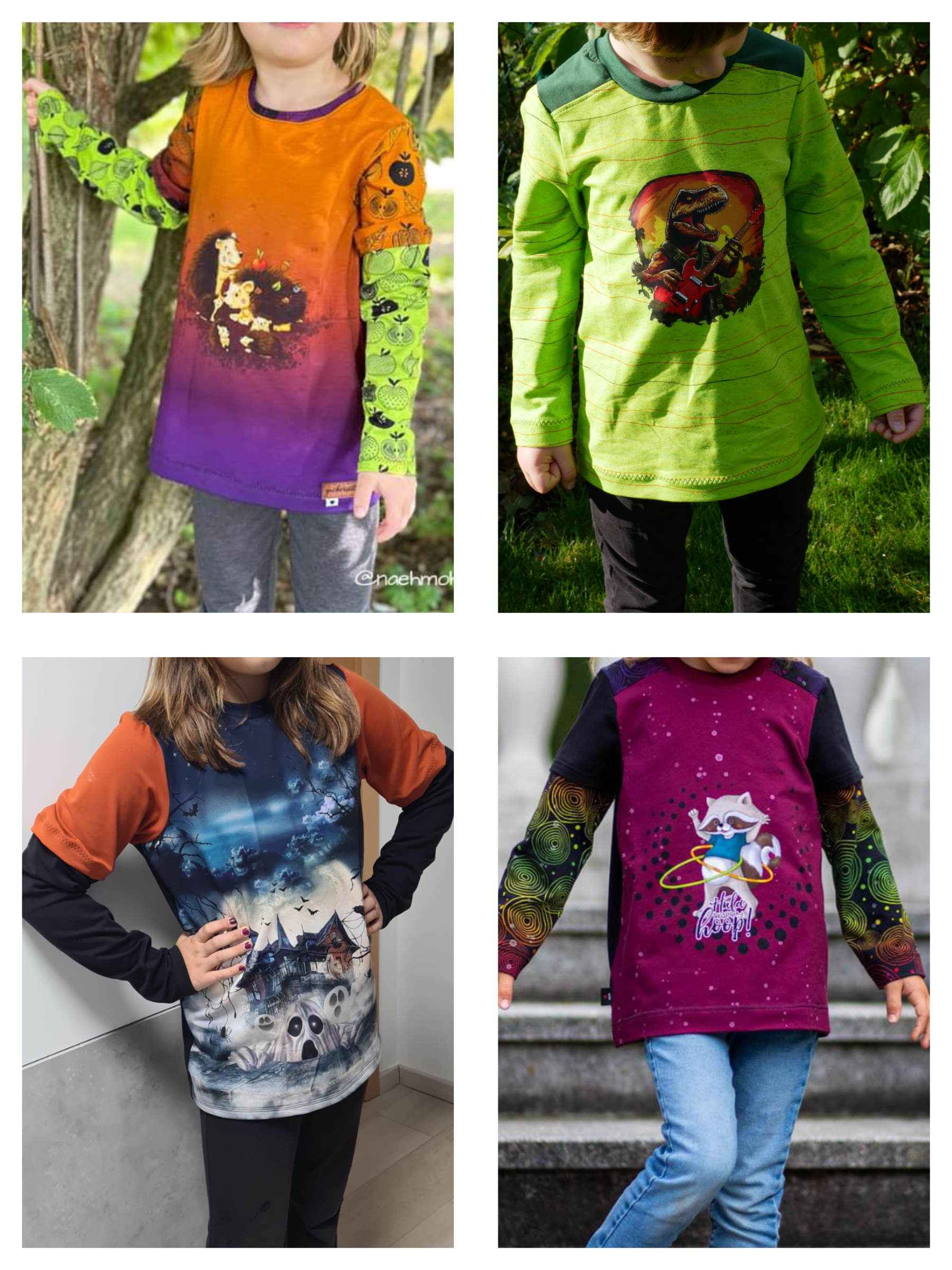 Im Schnittmuster sind Varianten mit kurzen Ärmeln, langen Ärmeln, Lagenlookärmel und einer Passe enthalten.
