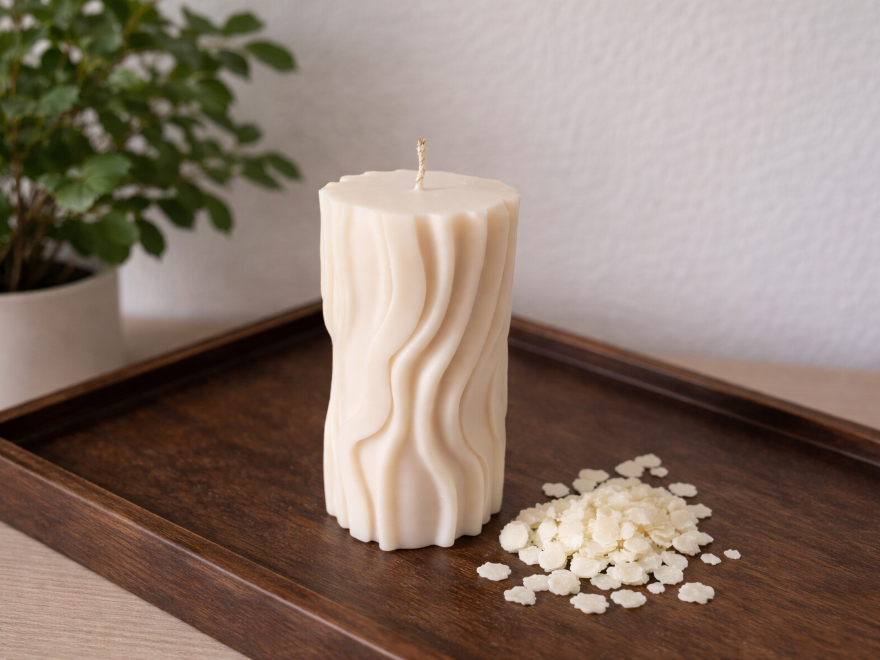 Handgegossene Designkerze „Wellenform“ aus Rapswachs